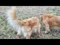 癒し動画 うさぎ Golden retriever playing in the evening dry grass fallow field | |